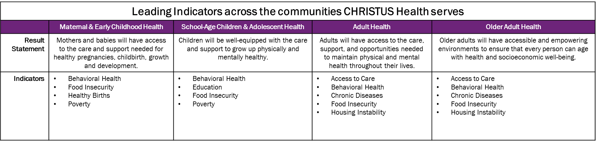CHRISTUS Health works in close collaboration with local nonprofits, public health agencies, educational institutions, and other community organizations to conduct Community Health Needs Assessments (CHNAs). These assessments help us identify the most pressing health needs in the communities we serve, with a special focus on those who are poor and vulnerable.